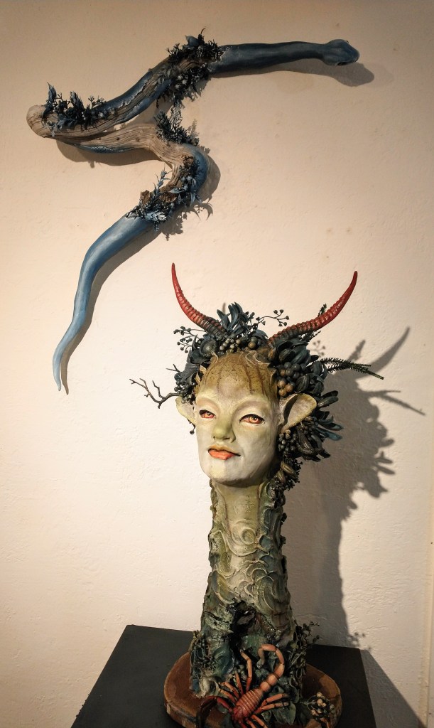 Many sculptures incorporate found objects and recycled elements. In her work, Liz uses her mixed media experience to create new things and recycle old. She sculpts pieces with elements of history, nostalgia, and humor.